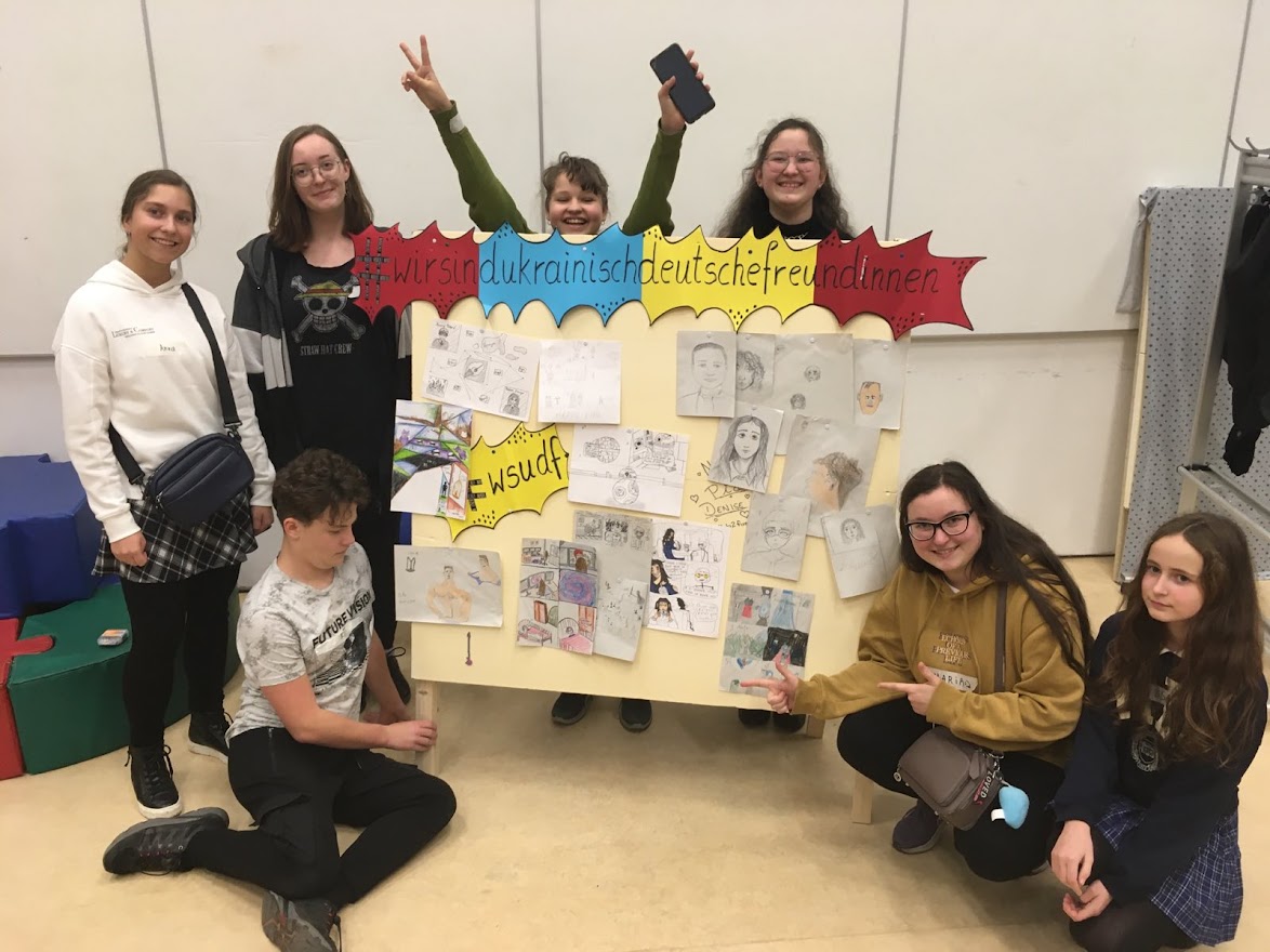 Unter dem Motto „Wir sind ukrainisch-deutsche Freund*innen“ konnten die 40 Jugendlichen unter vier angebotenen Workshops wählen. Es gab einen Improtheaterkurs mit Daniel, einen Social Media Workshop mit Udo, Sounds kreieren und Handpuppen basteln mit Pyro und Comics zeichnen mit Mali. Unterstützt wurde der Tag von vielen ehrenamtlichen Helfer*innen und Sprachmittler*innen.